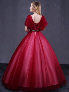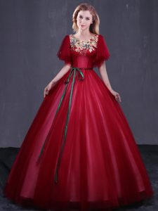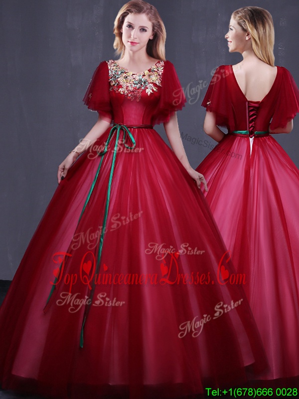 High End Lavender Scoop Neckline Appliques Quinceanera Dresses Short Sleeves Lace Up