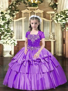 High End Lavender Sleeveless Taffeta Lace Up Little Girls Pageant Dress Wholesale for Party and Wedding Party
