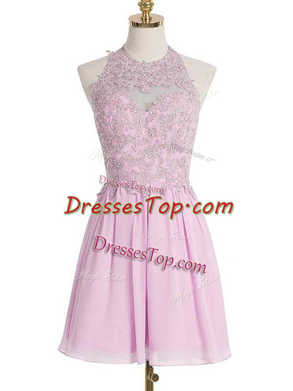 High End Lilac Chiffon Lace Up Quinceanera Court Dresses Sleeveless Knee Length Appliques