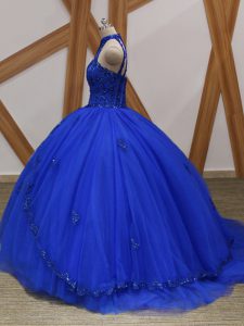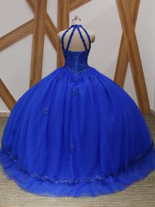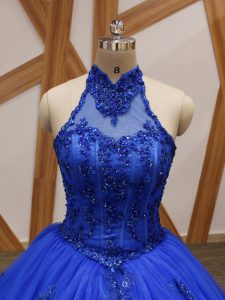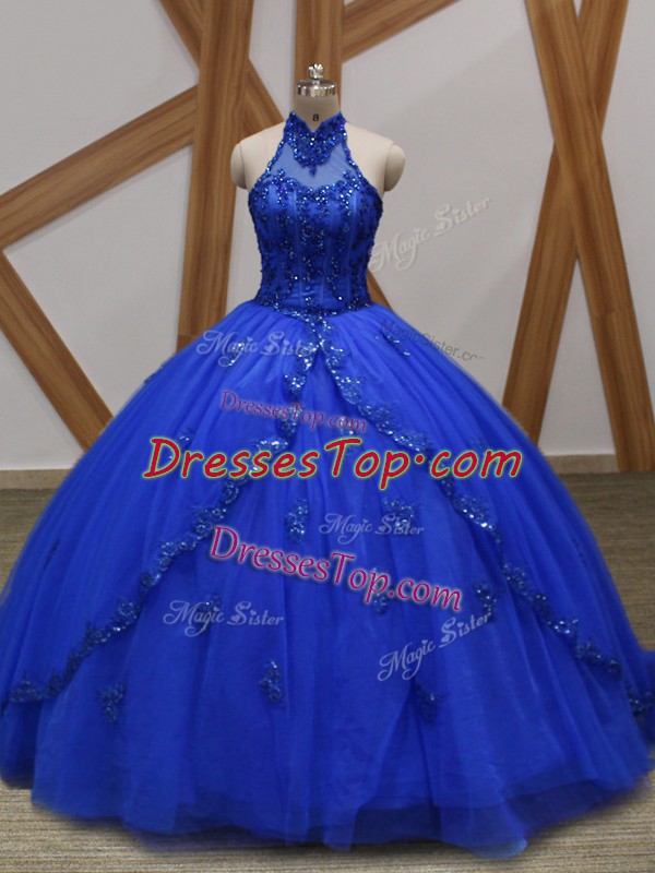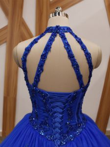 High End Royal Blue Sleeveless Appliques Lace Up Vestidos de Quinceanera