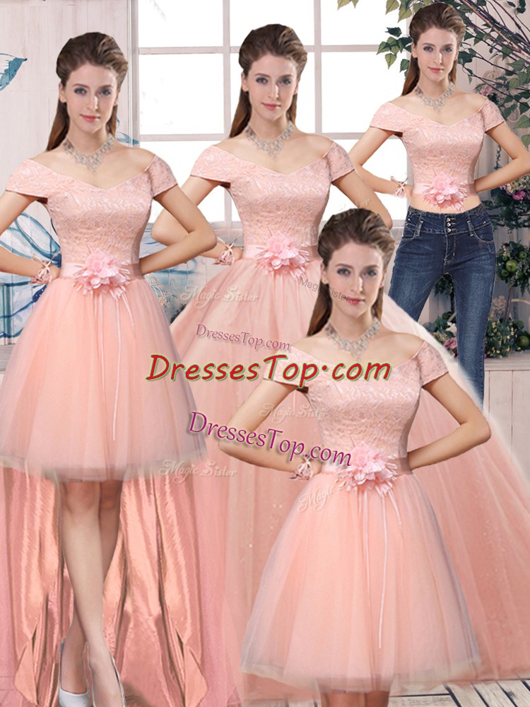 High End Short Sleeves Lace and Hand Made Flower Lace Up Sweet 16 Dresses