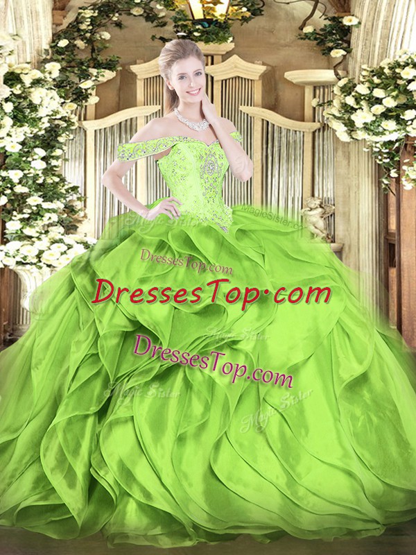 High End Sleeveless Floor Length Beading and Ruffles Lace Up Sweet 16 Quinceanera Dress