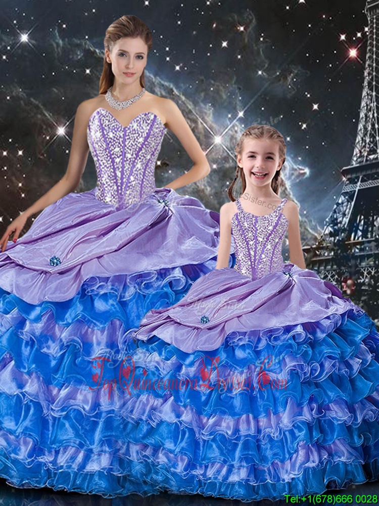 High End Sleeveless Organza Floor Length Lace Up 15th Birthday Dress in Multi-color for with Beading and Ruffles