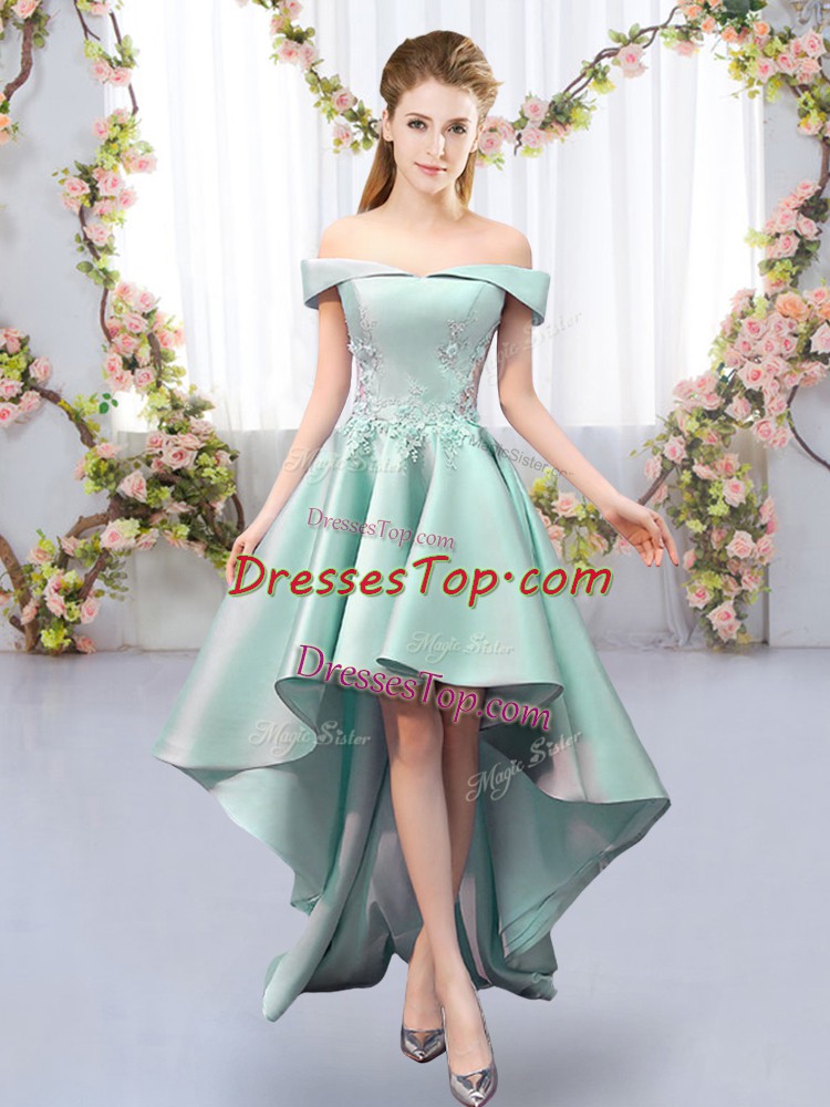 High Low Lace Up Damas Dress Apple Green for Prom and Party and Wedding Party with Appliques