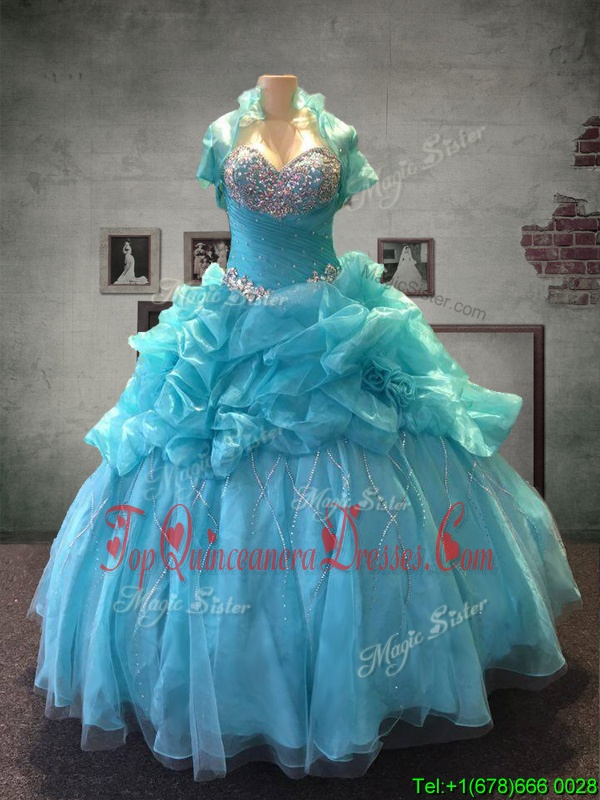 High Quality Aqua Blue Sweetheart Neckline Beading and Pick Ups Quinceanera Dresses Sleeveless Lace Up