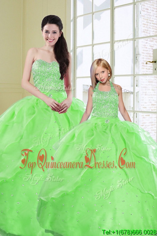 High Quality Beading and Sequins 15 Quinceanera Dress Green Lace Up Sleeveless Floor Length