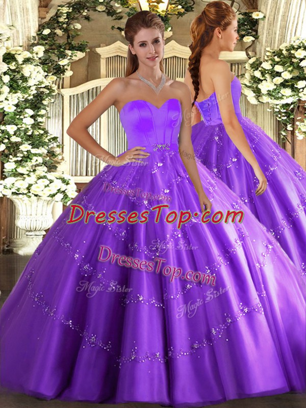 High Quality Eggplant Purple Quinceanera Dress Military Ball and Sweet 16 and Quinceanera with Beading and Appliques Sweetheart Sleeveless Lace Up