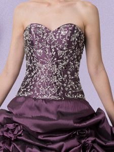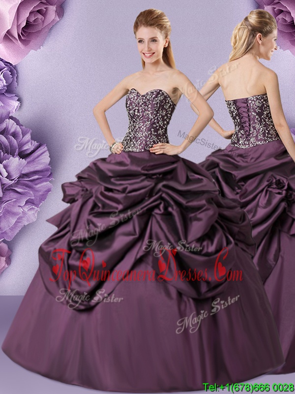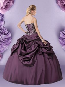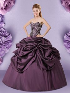 High Quality Purple Ball Gowns Sweetheart Sleeveless Taffeta Floor Length Lace Up Embroidery and Pick Ups Vestidos de Quinceanera