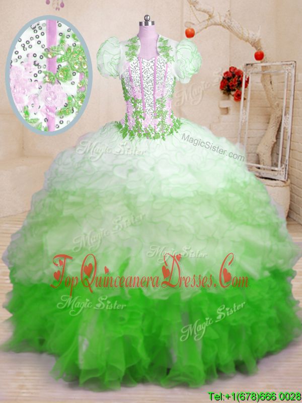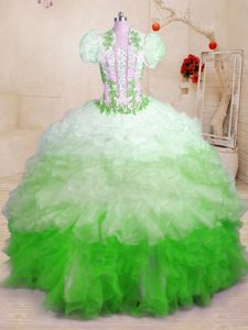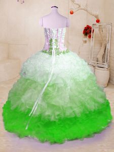 High Quality Sleeveless Organza With Brush Train Lace Up Quinceanera Dresses in Multi-color for with Beading and Appliques and Ruffles