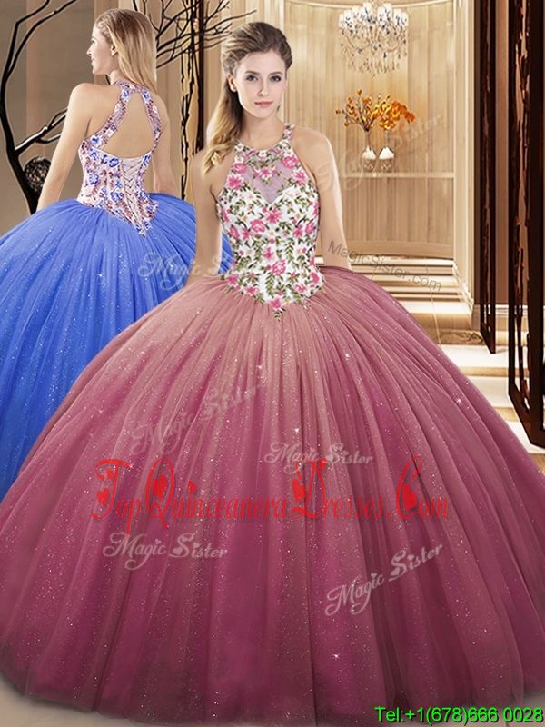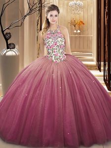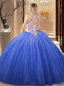 High Quality Tulle Sleeveless Floor Length Quinceanera Gowns and Lace and Appliques