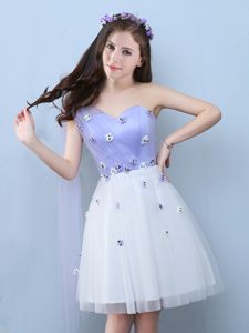 High Quality Tulle V-neck Sleeveless Lace Up Appliques Dama Dress in White