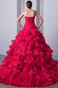 Hot Pink A-Line / Princess Sweetheart Brush Train Organza Beading and Ruffles Quinceanea Dress