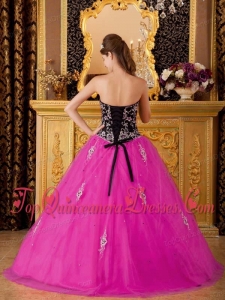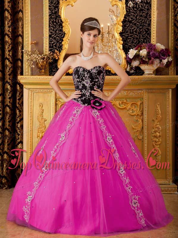 Hot Pink A-line / Princess Sweetheart Floor-length Tulle Beading Quinceanera Dress