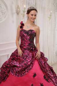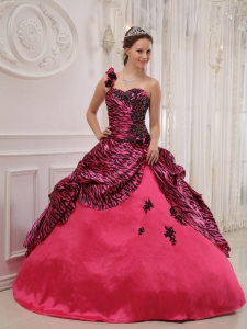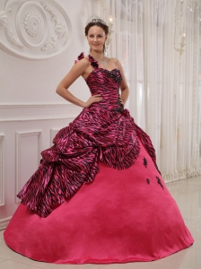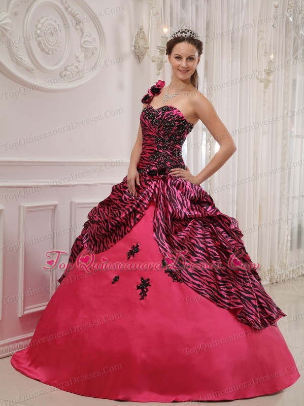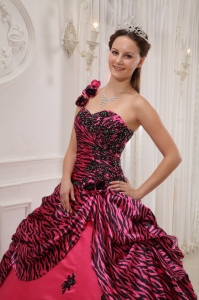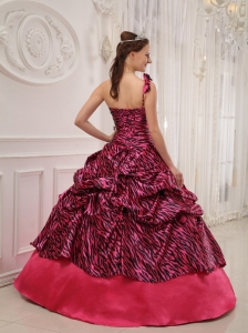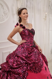 Hot Pink and Black Zebra Quinceanera Dress One Shoulder