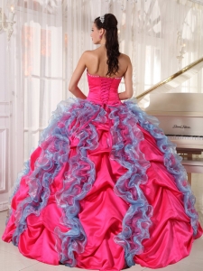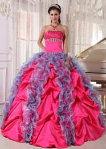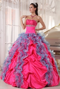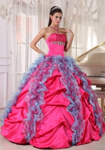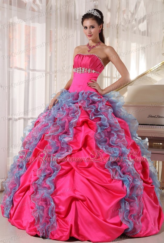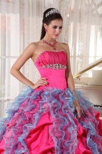 Hot Pink And Sky Blue Beading Sweet 16 Quinceanera Dress