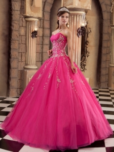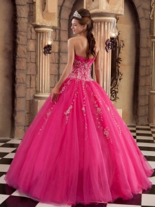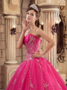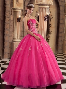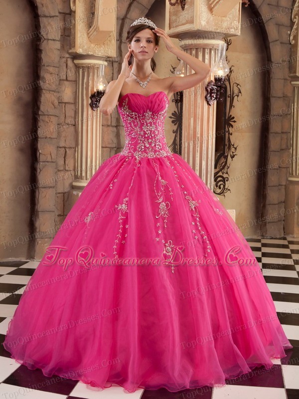 latest quinceanera dress with appliques, Hot Pink Applique and Beading Organza Quinceanera Dress