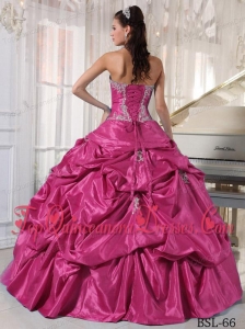Hot Pink Ball Gown Strapless Floor-length Taffeta and Tulle Appliques Quinceanera Dress