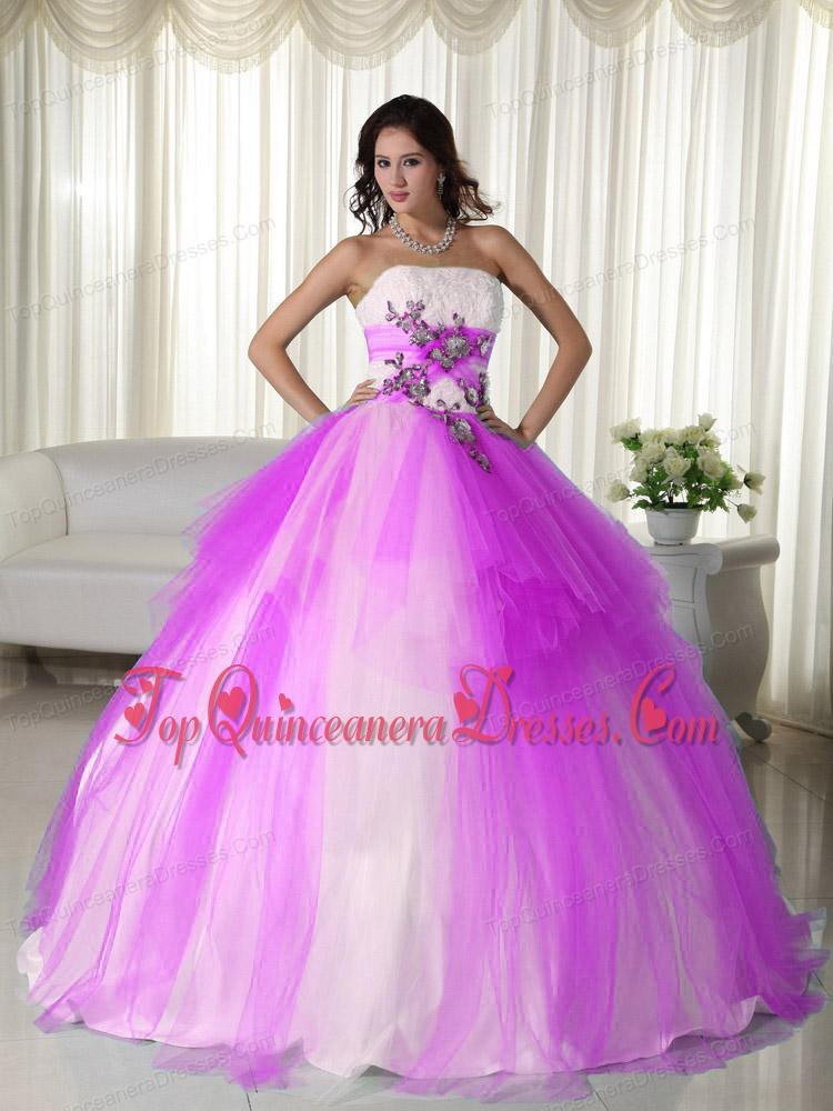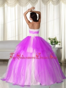 Hot Pink Ball Gown Strapless Floor-length Tulle Beading Unique Quinceanera Dress