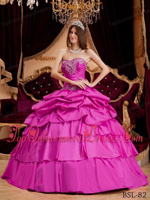 Hot Pink Ball Gown Sweetheart Floor-length Taffeta Appliques Quinceanera Dress