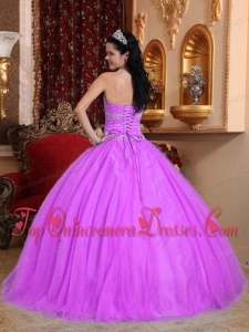 Hot Pink Ball Gown Sweetheart Floor-length Tulle and Taffeta Beading Unique Quinceanera Dress