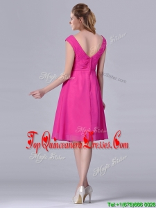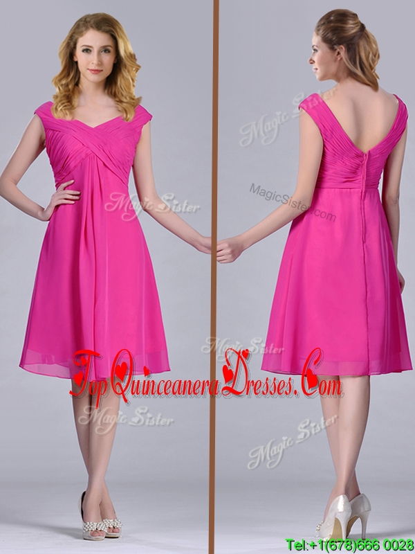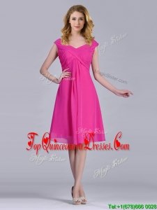 Hot Pink Empire Knee-length Chiffon Ruching Short Dama Dress for Graduation