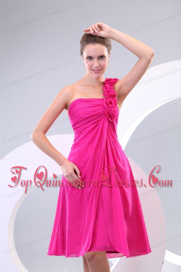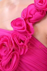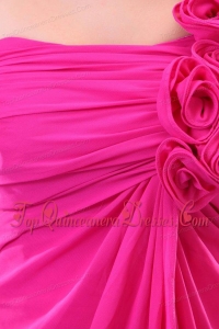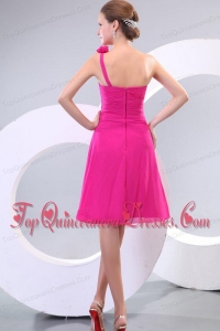 Hot Pink Hand Made Flowers and Ruching One Shoulder Dama Dresses