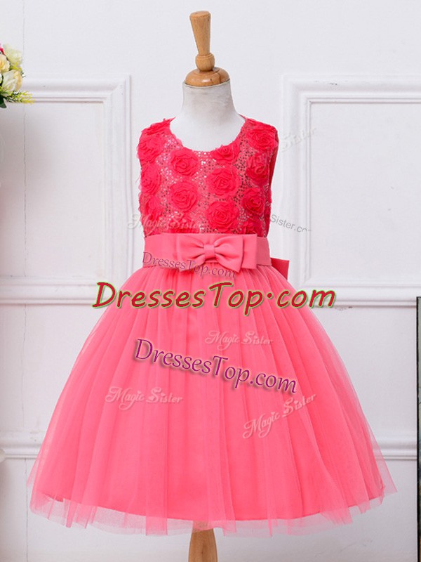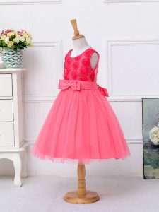 Hot Pink Lace Up Little Girls Pageant Dress Bowknot Sleeveless Knee Length