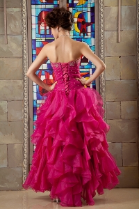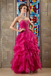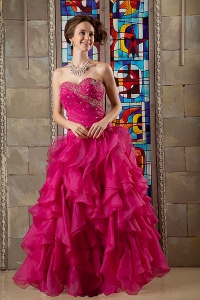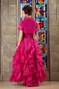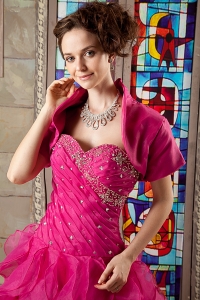 Hot Pink Prom Dresses Organza Sweetheart Beading Jacket