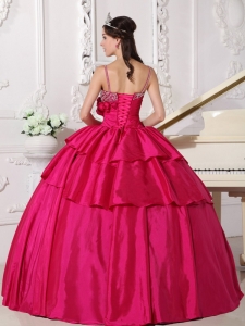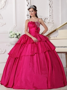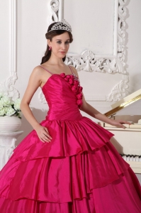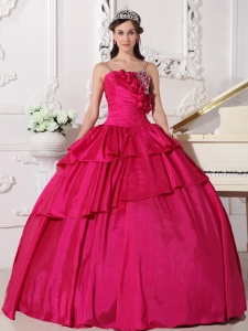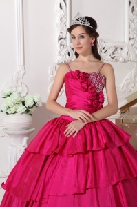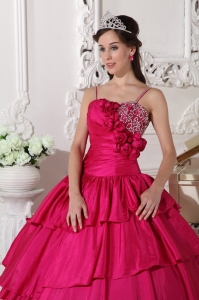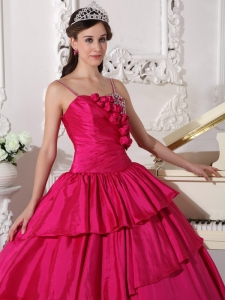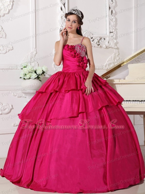 Hot Pink Quinceanera Dress Beaded Straps Hand Made Flowers