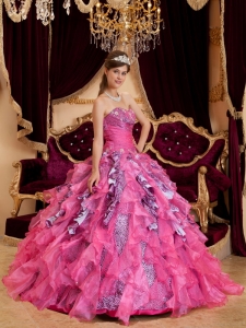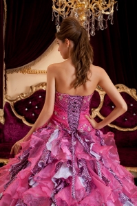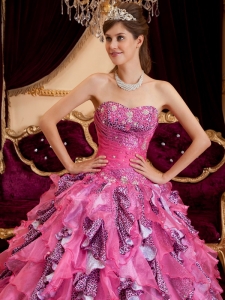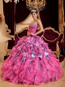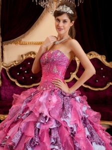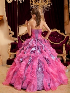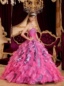 Hot Pink Quinceanera Dress Leopard Cascading Ruffles