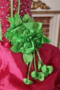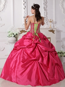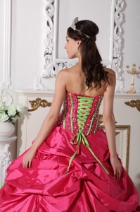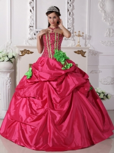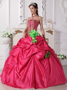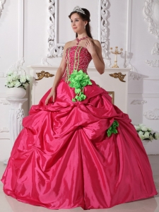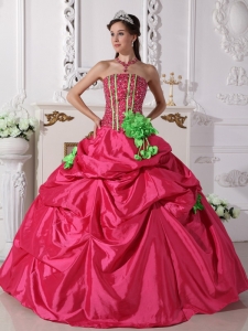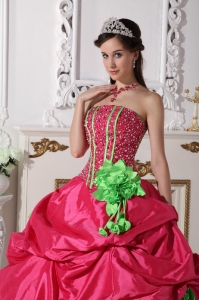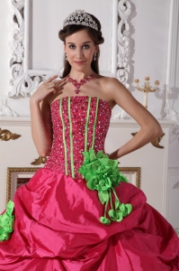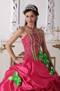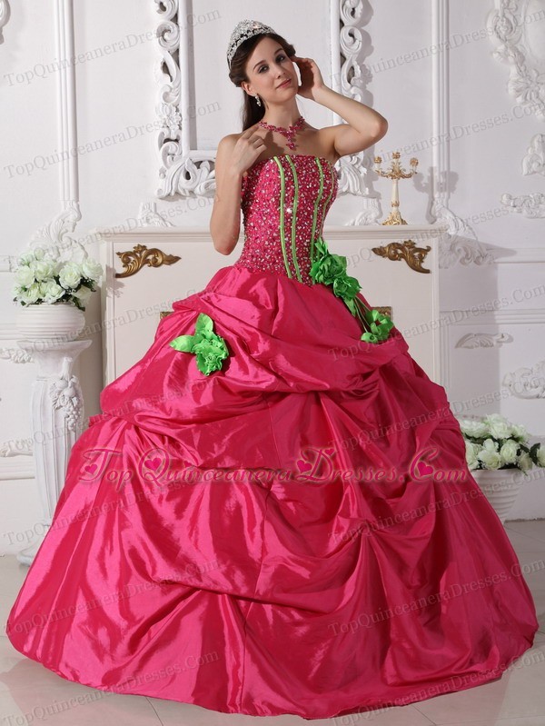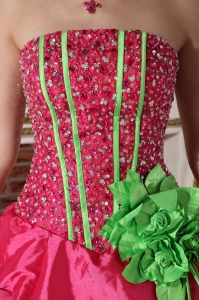 Hot Pink Quinceanera Dress Strapless Beaded Hand Made Flowers