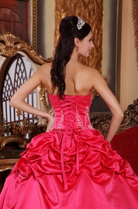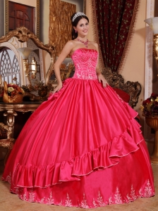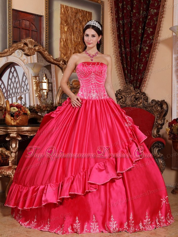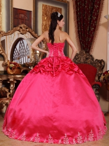 Hot Pink Quinceanera Dress Strapless Taffeta Embroidery Pretty