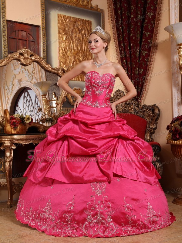 Hot Pink Quinceanera Dress Sweetheart Embroidery Beaded