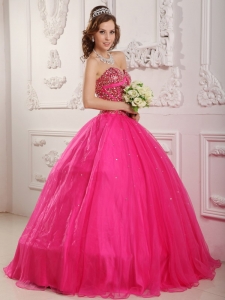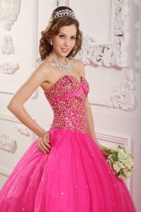 Hot Pink Quinceanera Dress Sweetheart Shining Beading