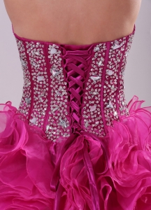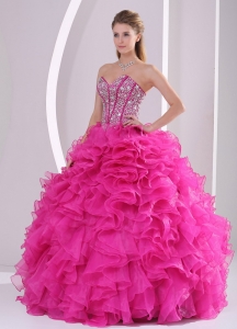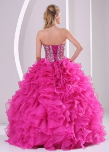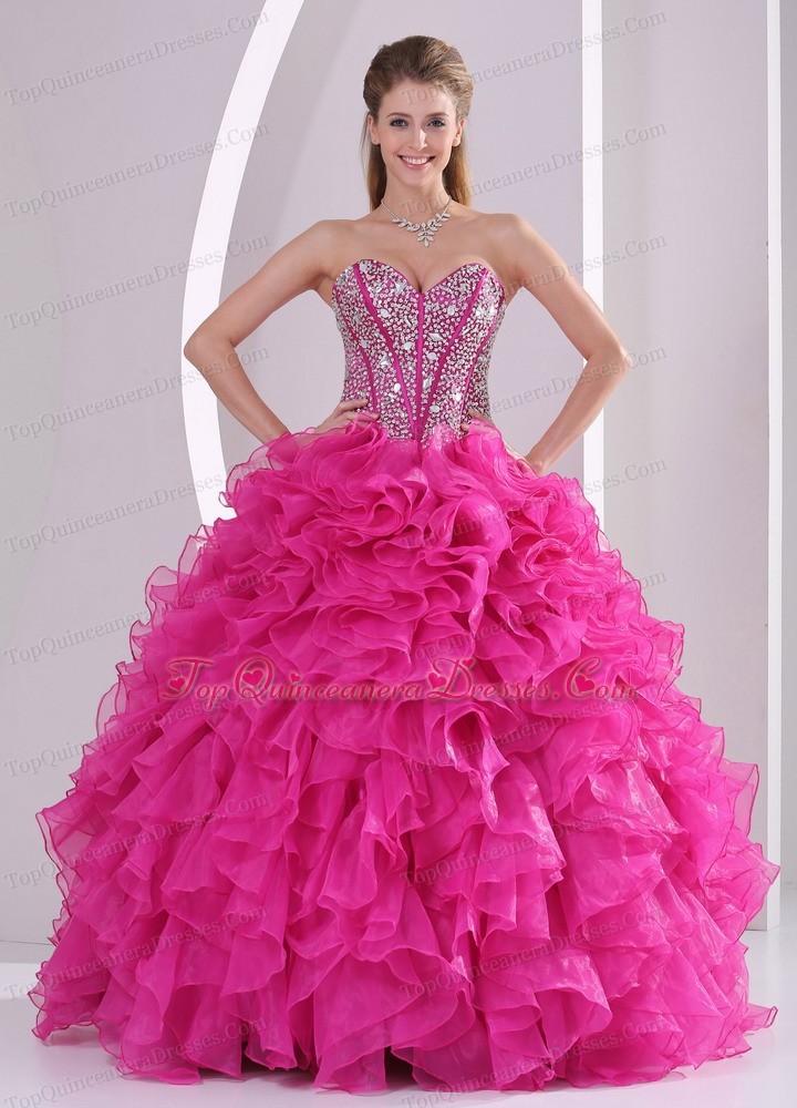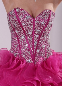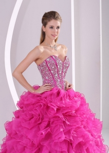 Hot Pink Ruffle And Beading Quinceanera Dress in Sweet 16