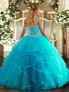 Hot Pink Strapless Neckline Beading and Ruffles Sweet 16 Dresses Sleeveless Lace Up