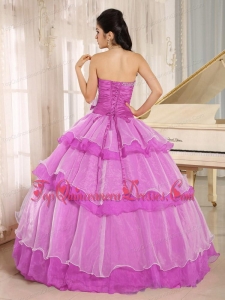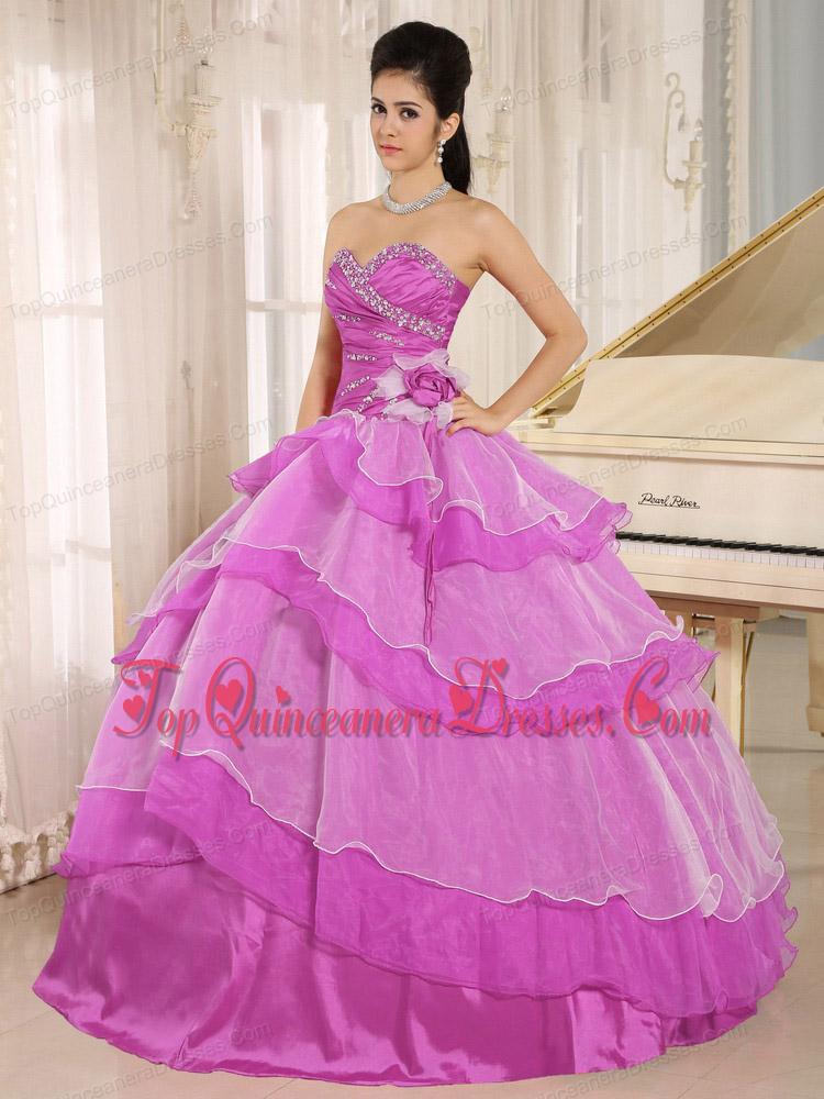 Hot Pink Sweetheart Beaded Decorate and Ruched Bodice Ruffled Layeres Quinceanera Dress In 2013