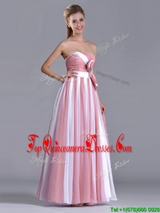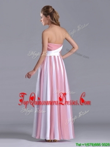 Hot Sale Bowknot Strapless White and Pink Dama Dress with Side Zipper