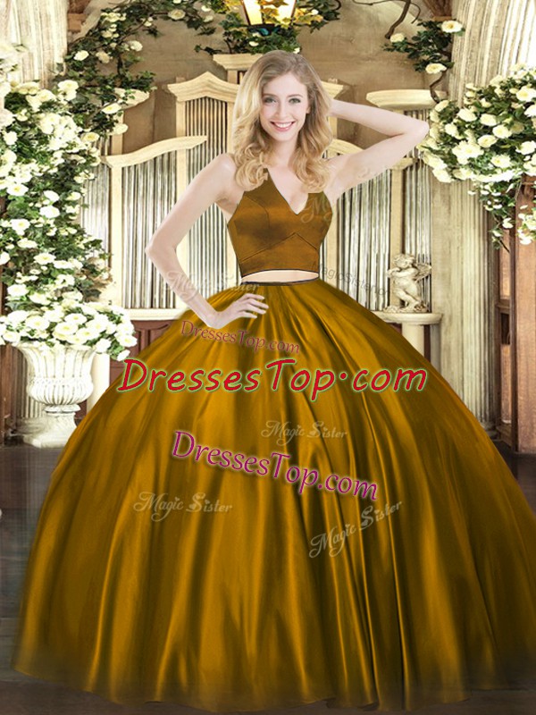 Hot Sale Brown Halter Top Zipper Ruching Vestidos de Quinceanera Sleeveless