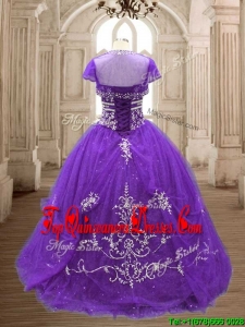 Hot Sale Brush Train Purple Quinceanera Dress with Appliques