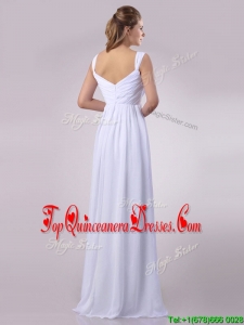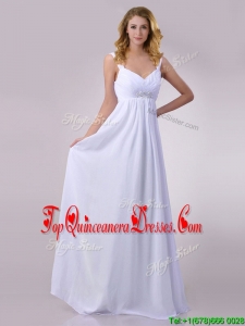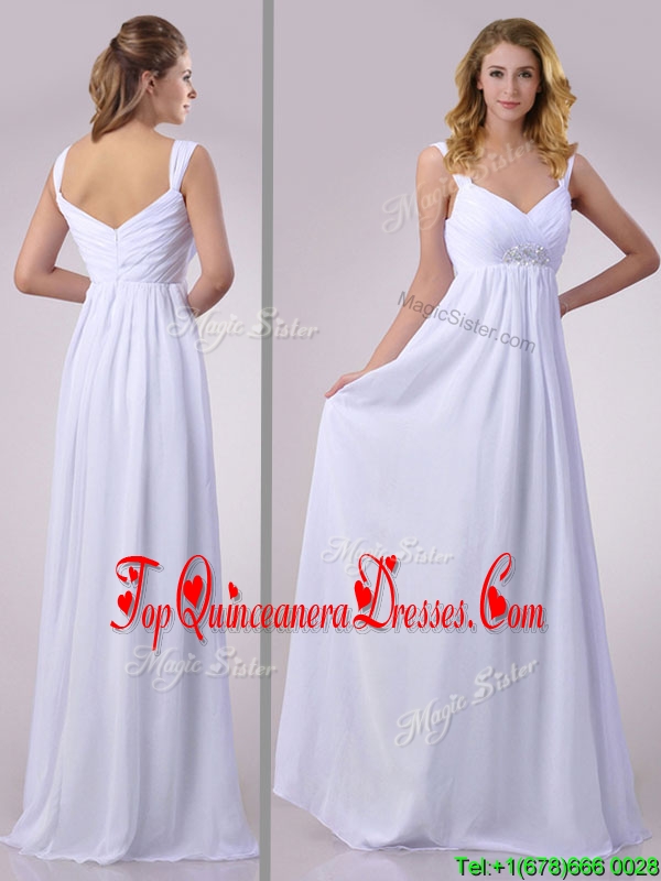 Hot Sale Empire Beaded White Chiffon Dama Dress with Straps