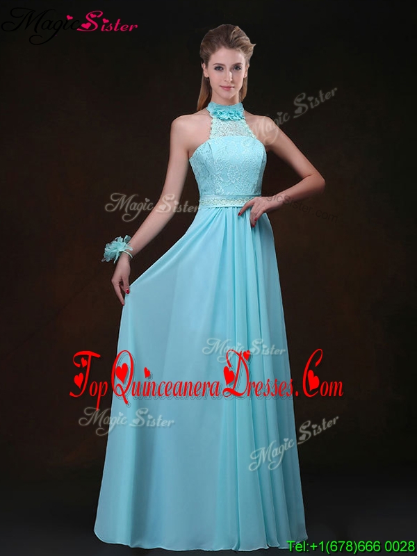 Hot Sale Empire Halter Top Dama Dresses with Lace