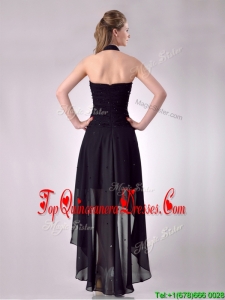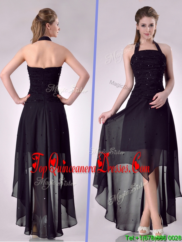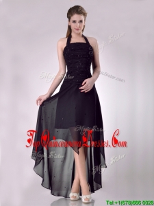 Hot Sale Halter Top High Low High Low Dama Dress with Beading