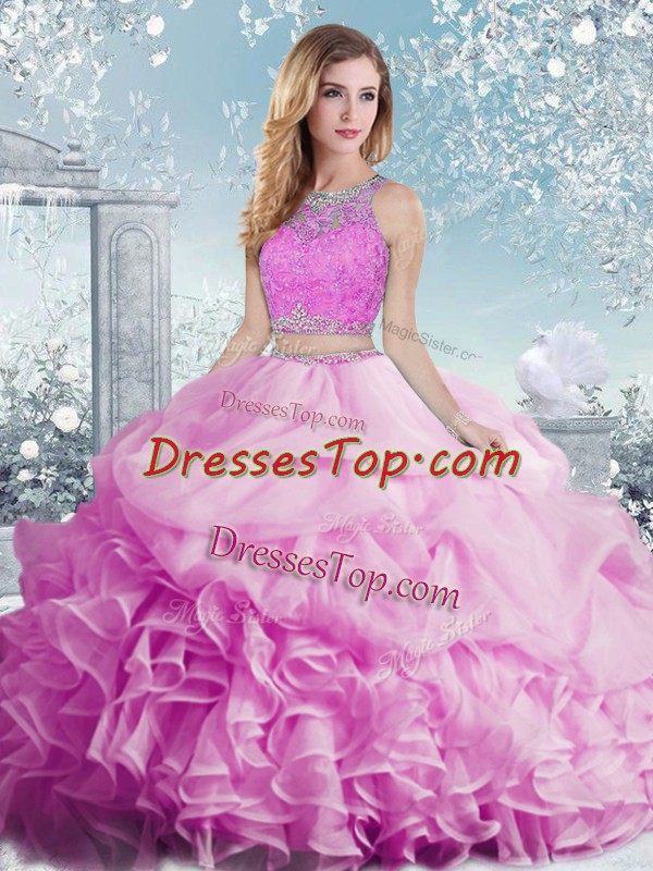 Hot Sale Lilac Sleeveless Organza Clasp Handle Ball Gown Prom Dress for Military Ball and Sweet 16 and Quinceanera