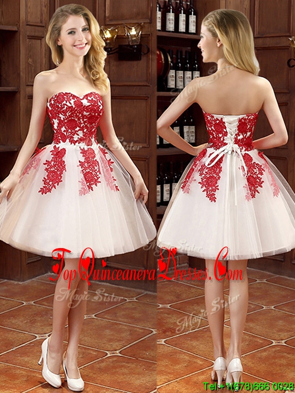 Hot Sale Mini Length Appliques Quinceanera Dama Dress in White
