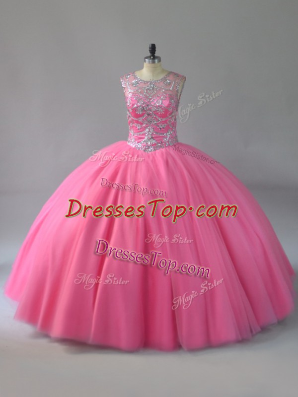 Hot Sale Scoop Sleeveless Quince Ball Gowns Beading Lace Up