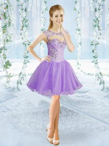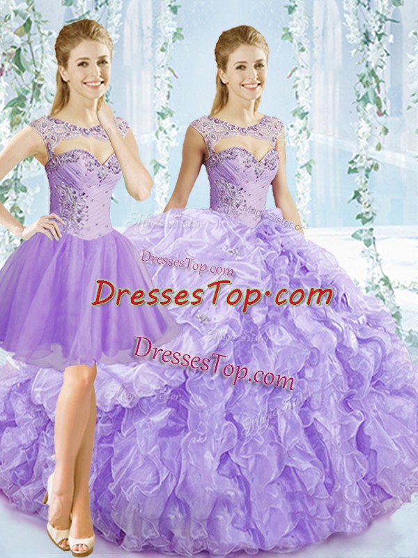 Hot Sale Sleeveless Beading and Ruching and Pick Ups Lace Up Sweet 16 Dress with Lavender Brush Train