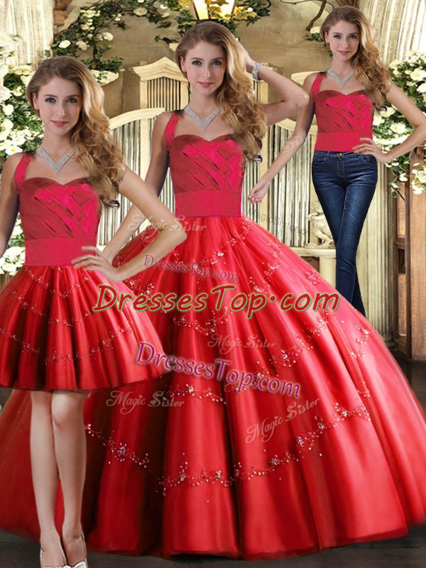 Hot Sale Sleeveless Lace Up Floor Length Appliques Sweet 16 Quinceanera Dress