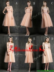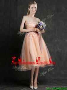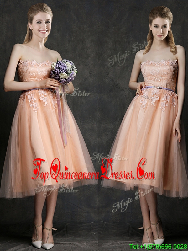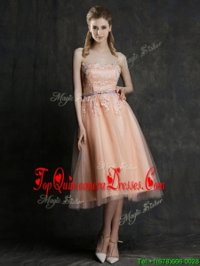 Hot Sale Strapless Peach Damas Dress with Sashes and Lace