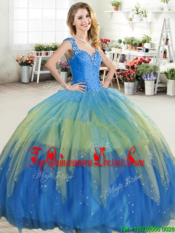 Hot Sale Straps Beaded and Ruffled Layers Quinceanera Dress in Tulle
